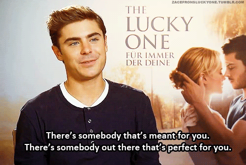 "THERE'S SOMEBODY THAT'S MEANT FOR YOU.THERE'S SOMEBODY OUT THERE THAT'S PERFECT FOR YOU"